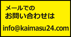 | メール査定見積り | 上記のアドレスに売りたい商品の詳細等を送っていただく形になります。 画像があればより詳しくお値段なども出ますが、商品名、型式がわかればおおよそ査定はでますので、 まずは、売りたい物など大まかにご説明下さい。 |