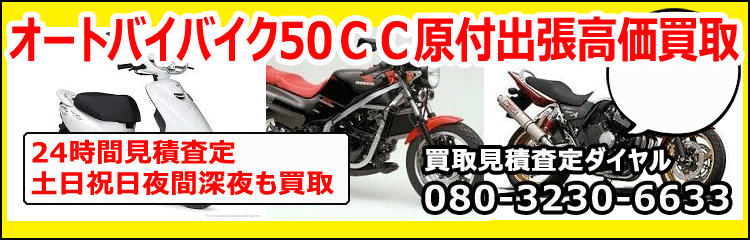 当店は、バイク、オートバイ、原付の買取にも大変力を入れております。買取できるバイクの種類は様々なものに買取対応していて、排気量は50CCの原付バイクから、125cc、250cc、400CC、750CC、1000ccまで、一般的な単車といわれるスタンダードなタイプから、50cc原付タイプのスクーター、よく配達等で使用されるカブ、スーパーカブの業務用タイプ、また、二輪車だけではなく、三輪タイプのバイクなど色々な種類、車種に対応しております。